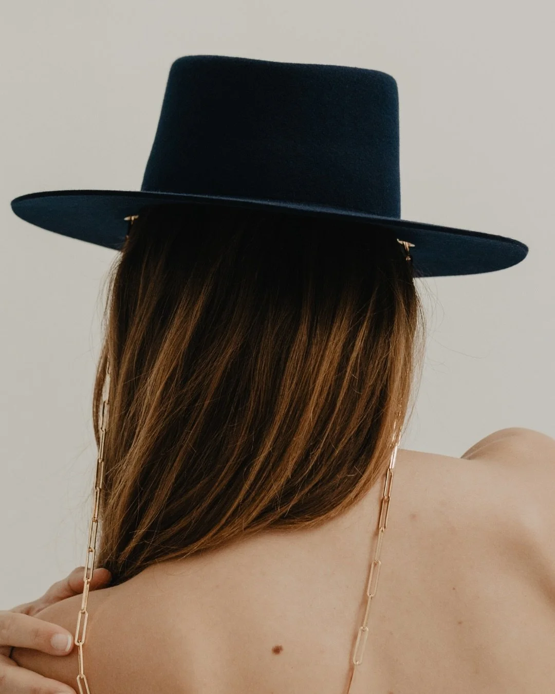 BASILE - CHAPEAU EN FEUTRE DE LAINE - BRODERIE SOLEIL ET CHAINE PLAQUÉ OR